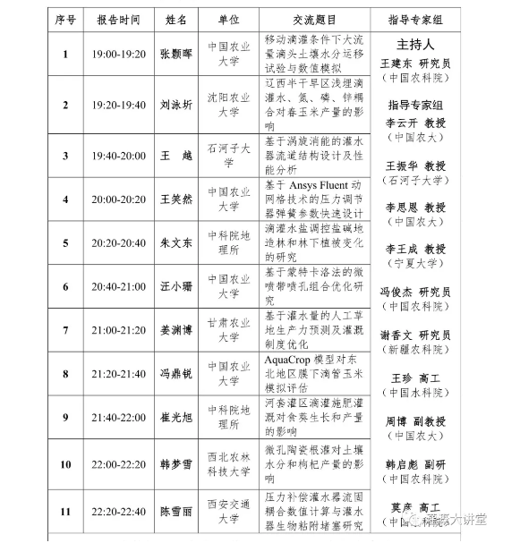 ? ? ? ? 研究生論壇專題交流會,有關(guān)微灌課題研究及成果匯報。