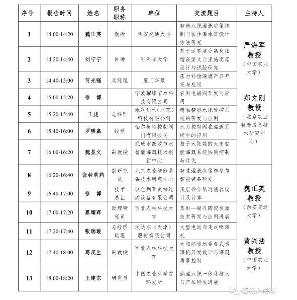 三、7月26下午分為四個分會場:節(jié)水灌溉理論、節(jié)水灌溉技術(shù)、節(jié)水灌溉裝備研發(fā)、節(jié)水灌溉模式集成與應(yīng)用。