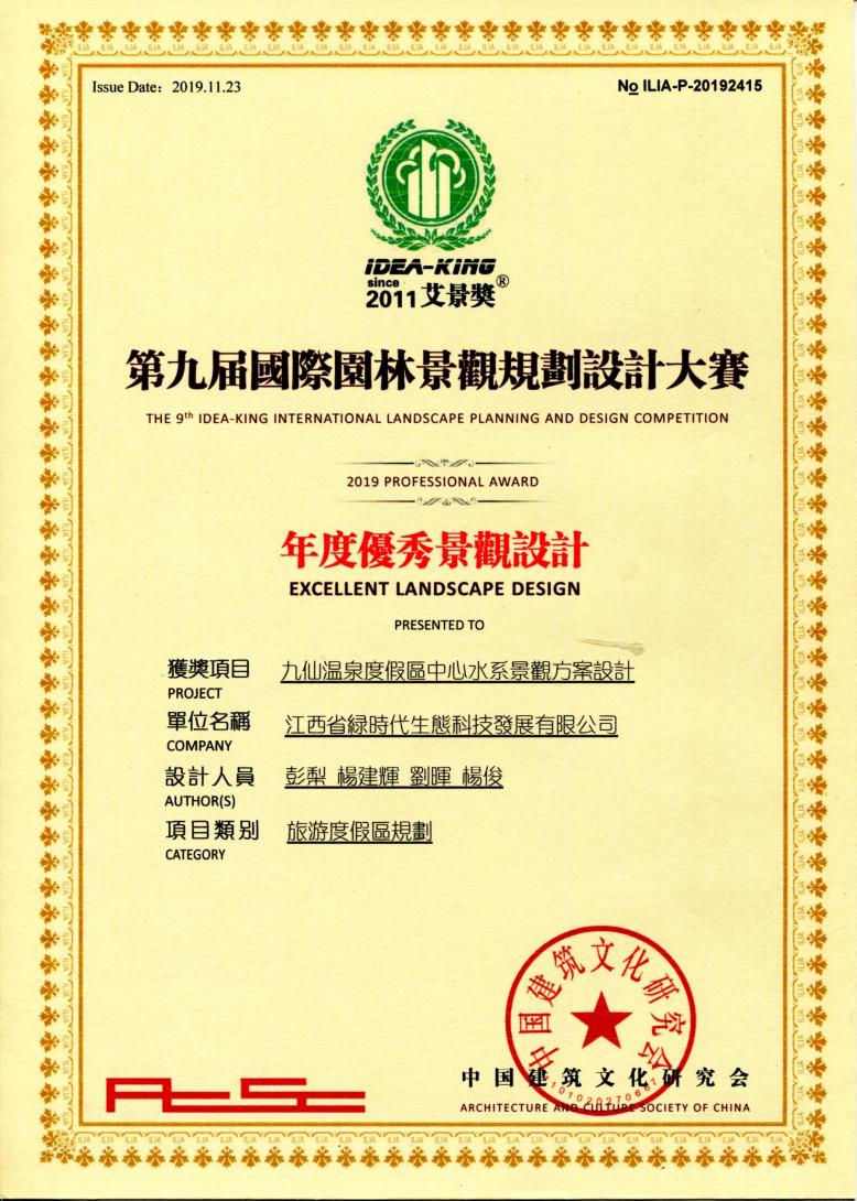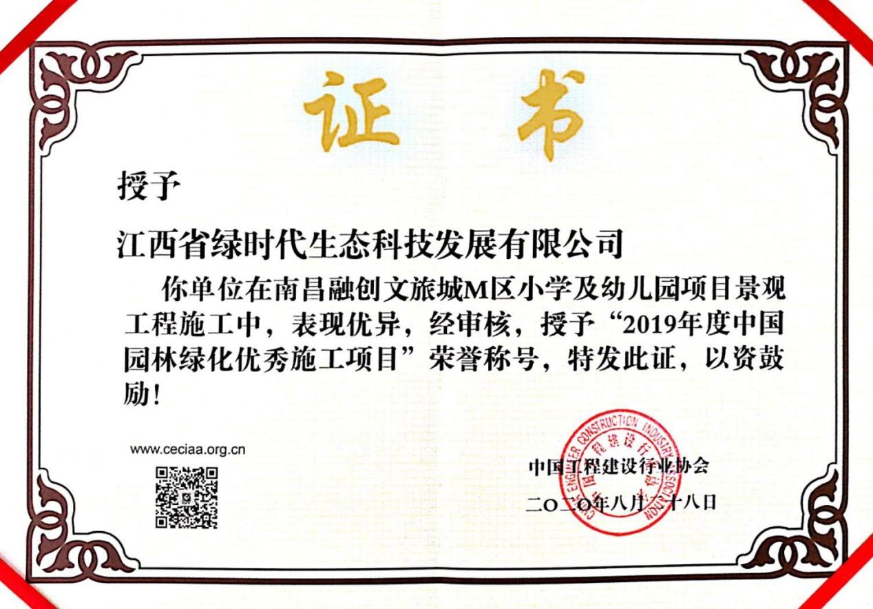 ? ? ? ?工匠精神筑標(biāo)桿。綠時代擁有一支技術(shù)精湛的市政、園林景觀設(shè)計團(tuán)隊和施工隊伍,先后參與了多個重大綜合性項目的設(shè)計和施工,充分展現(xiàn)綠時代公司市政、園林景觀設(shè)計、施工、養(yǎng)護(hù)等各方面的綜合實力。九仙溫泉度假區(qū)中心水系景觀方案設(shè)計榮獲第九屆國際園林景觀規(guī)劃設(shè)計大賽;2019年度優(yōu)秀景觀設(shè)計獎;南昌融創(chuàng)文旅城M區(qū)小學(xué)及幼兒園項目景觀工程施工項目,被中國工程建設(shè)行業(yè)協(xié)會授予2019年度中國園林綠化優(yōu)秀施工項目榮譽稱號。